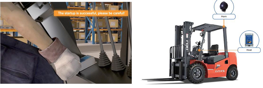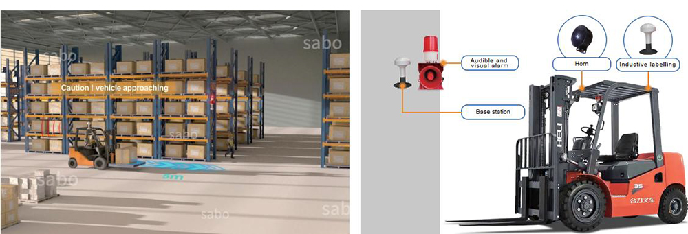 利用安装在叉车左右两侧和后方的LED警示灯与传感器,当检测到有人或移动物体靠近叉车时,系统会发出声音警报,提醒驾驶员和周围人员远离危险区域。